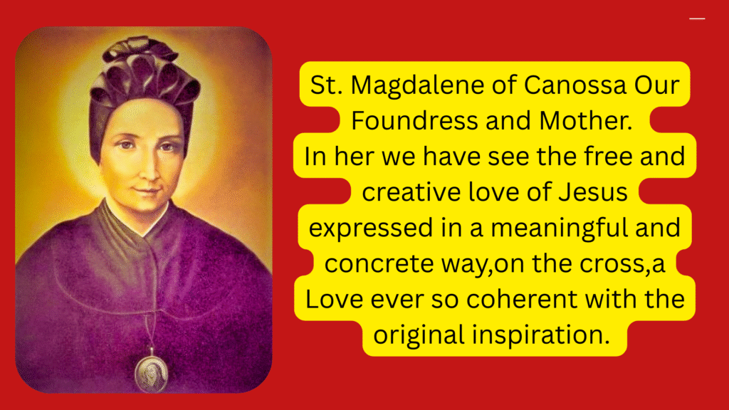 The Canossian Daughters of Charity, Servants of the poor are an international missionary congregation of women found by St. Magdalene of Canossa, canonized in 1988. Here in Uganda the congregation was inaugurated in 1971 in the presence of Sr. Carolina Gandini, Sr. Anna Maria Sarti, Sr. Sophie Fernades and Sr. Pierrosa Diotti with the help of the late Eminence Cardinal Emmanuel Nsubuga. This move was intended to make Jesus known and loved through the ministries of Charity.